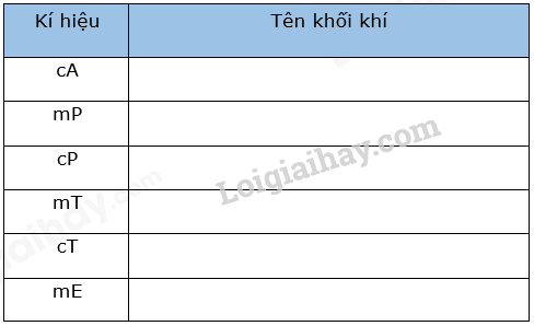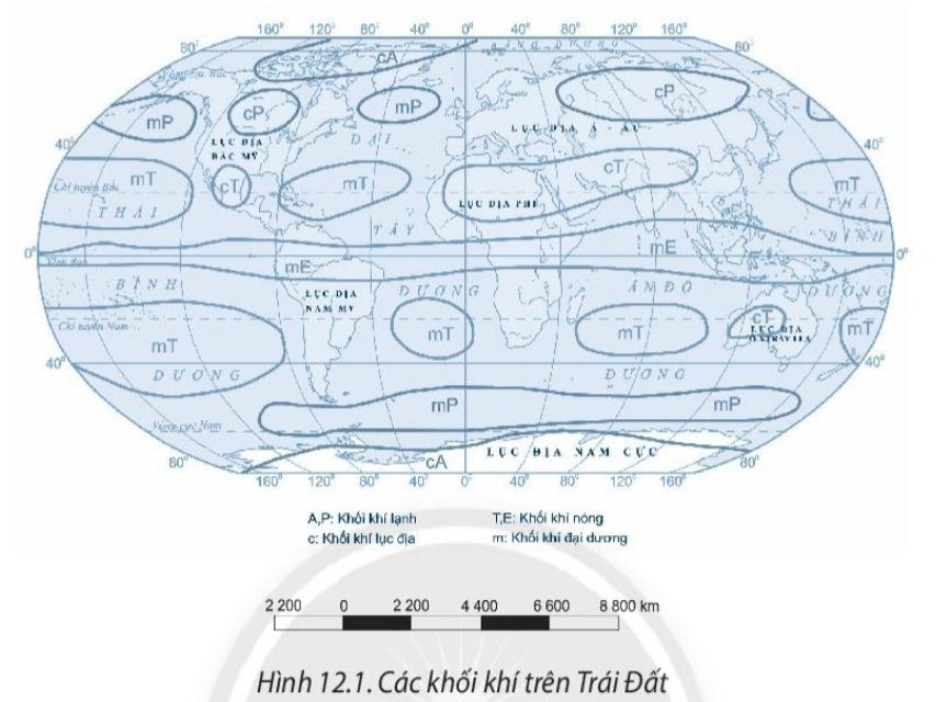 Dựa vào hình 12.1 em hãy hoàn thành bài tập sau: 1. Ghi tên các khối khí: 2. Biết rằng các khối khí luôn chuyển động. Em hãy cho biết ở khu vực Bắc Mỹ thường chịu ảnh hưởng của những khối khí nào?