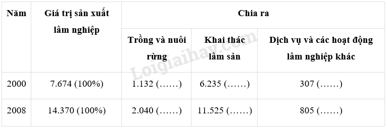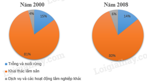 – Vẽ biểu đồ thể hiện cơ cấu giá trị sản xuất lâm nghiệp phân theo hoạt động năm 2000 và 2008 (trước khi vẽ, hãy xử lí số liệu và điền vào bảng trên).