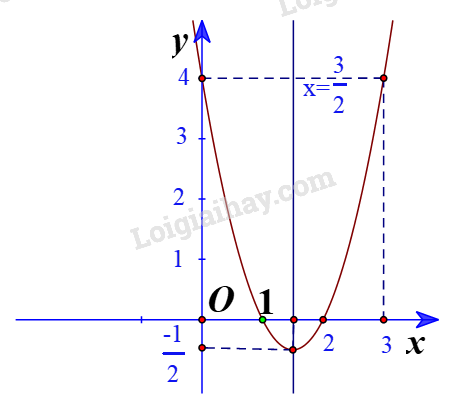 + Đồ thị hàm số có đỉnh \(I\left( {\frac{3}{2}; – \frac{1}{2}} \right)\)