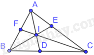 Cho tam giác ABC có các đường phân giác AD, BE, CF \(\left( {D \in BC,E \in AC,F \in AB} \right)\) cắt nhau tại I. Chứng minh: