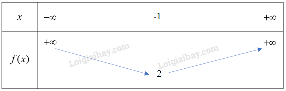 Vì hàm số bậc hai có \(a = 1 > 0\) nên ta có bảng biến thiên sau:
