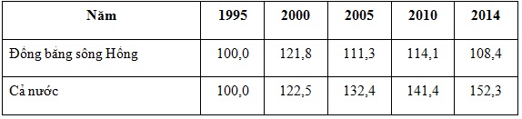 – Tốc độ tăng bình quân lương thực theo đầu người của cả nước tăng liên tục và tăng nhanh hơn ĐBSH (152,3% so với 108,4%). Năm 2014 tăng 152,3% so với năm 1995, nghĩa là tăng thêm 52,3%.