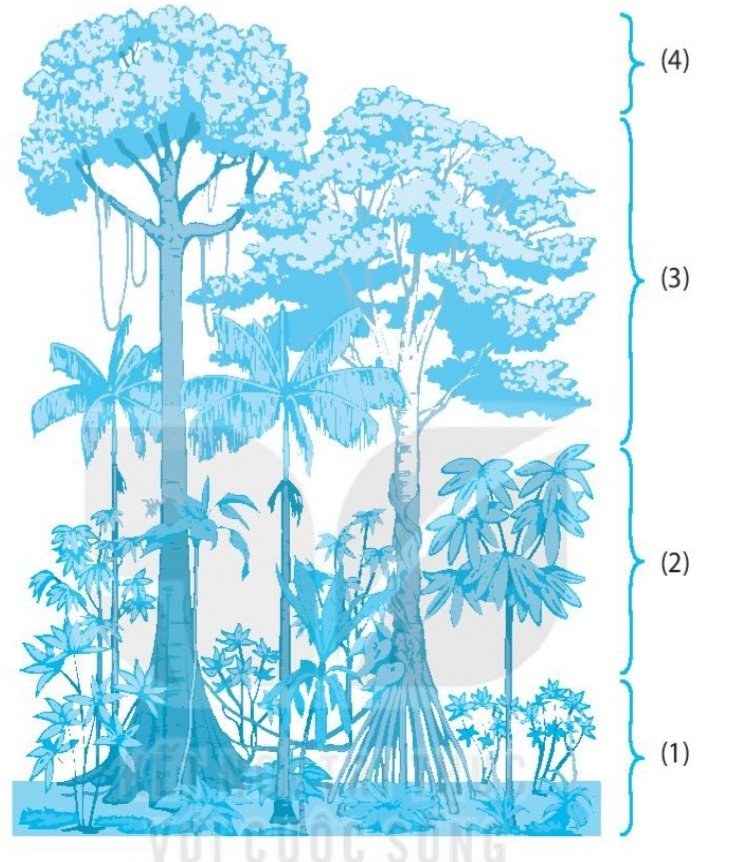 Em hãy chú thích các tầng của rừng mưa nhiệt đới trong hình sau: