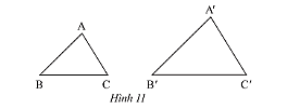 a) Trong Hình 11, cho biết \(\Delta ABC\backsim\Delta A’B’C’\). Viết tỉ số của các cạnh tương ứng và chỉ ra các cặp góc tương ứng.