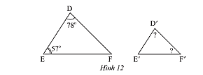 Do đó,  \(\widehat D = \widehat {D’} = 78^\circ ;\widehat F = \widehat {F’} = 45^\circ \).
