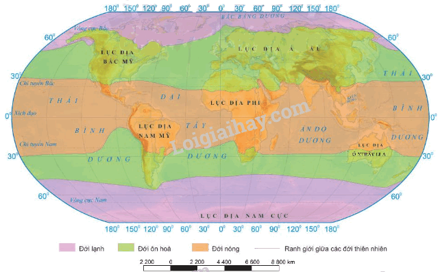Hình 20.3. Các đới thiên nhiên trên thế giới