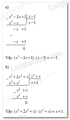 Vậy \(( – 32{x^5} + 1):( – 2x + 1) = 16{x^4} + 8{x^3} + 4{x^2} + 2x + 1\).