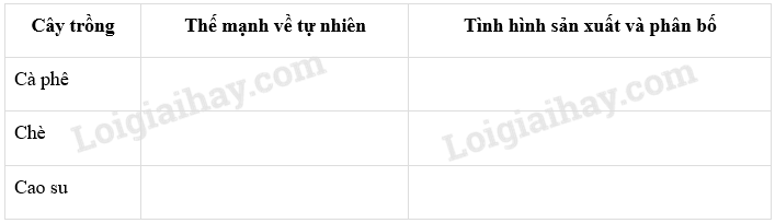 Căn cứ vào kiến thức trong SGK Địa lí 12, hãy điền những thông tin thích hợp vào bảng sau: