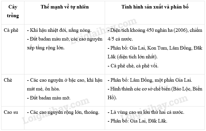 Giải bài 3 trang 67 tập bản đồ Địa lí 12, Căn cứ vào kiến thức trong SGK Địa lí 12, hãy điền những thông tin thích hợp vào bảng sau: