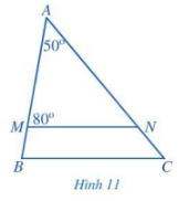 Trong Hình 11, MN // BC. Tính số đo góc C.