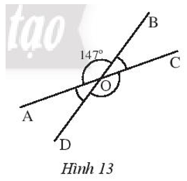 Vậy \(\widehat {BOC}\) = 33°,\(\widehat {COD}\) = 147° và \(\widehat {AOD}\) = 33°.