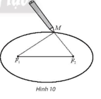 – Quàng vòng dây qua hai chiếc đinh và kéo căng tại một điểm M nào đó. Tựa đầu bút chì vào trong vòng dây tại điểm M rồi di chuyển sao cho dây luôn luôn căng. Đầu bút chì vạch lên tấm bìa một người mà người ta gọi là đường eip (Xem hình mình họa trong Hình 10)