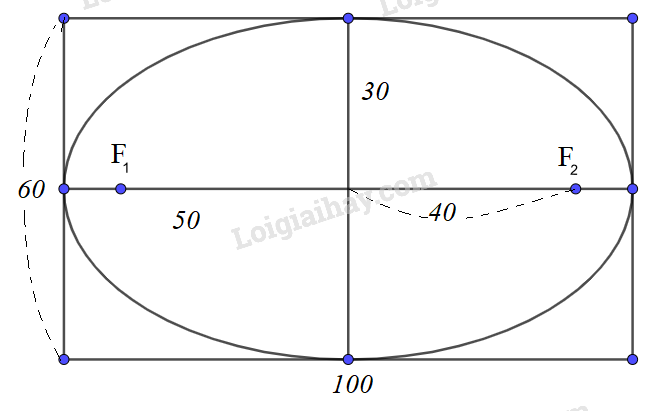 Để cắt một bảng hiệu quảng cáo hình elip có trục lớn là 1 m và trục nhỏ là 0,6 m từ một tấm ván ép hình chữ nhật có kích thước 1m x 0,6 m, người ta vẽ hình elip đó lên tấm ván ép như hướng dẫn sau: