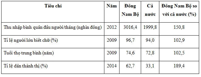 – Tất cả các chỉ số của vùng Đông Nam Bộ đều cao hơn cả nước.