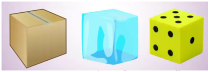 Hình lập phương: Quân xúc xắc, viên đá, cái hộp,…