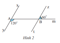 Ta có: \(\widehat {{A_1}} = \widehat {{B_1}}( = 60^\circ )\). Mà 2 góc này ở vị trí đồng vị