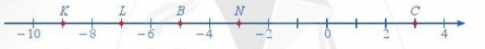 b) Vì điểm L biểu diễn số nguyên nằm giữa – 6 và – 8, mà – 7 là số nguyên duy nhất nằm giữa  – 6  và – 8 nên điểm biểu diễn số – 7 là điểm L.