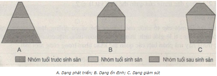 Vẽ sơ đồ 3 dạng tháp tuổi của quần thể.