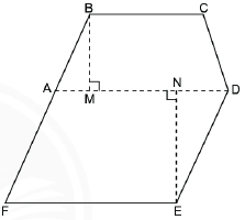 Một mảnh vườn có hình dạng như hình vẽ bên. Để tính diện tích mảnh vườn, người ta chia nó thành hình thang cân ABCD và hình bình hành ADEF có kích thước như sau: BC= 30 m; AD=42m, BM=22m, EN=28 m. Hãy tính diện tích mảnh vườn này.