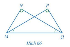 Cho Hình 66 có \(\widehat N = \widehat P = 90^\circ ,\widehat {PMQ} = \widehat {NQM}\). Chứng minh MN = QP, MP = QN.