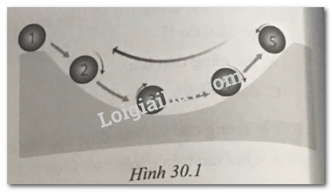 Một viên bi đang đứng yên ở vị trí 1. Đẩy nhẹ để viên bi lăn từ vị trí thứ 1 đến vị trí thứ 5 (hình 30.1)