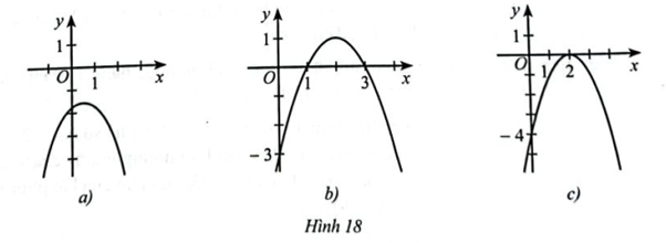 a) Quan sát đồ thị ở Hình 18a, ta có đồ thị hàm số \(y = f(x)\) nằm phía dưới trục hoành và không cắt trục hoành nên \(f\left( x \right) < 0\) với mọi \(x \in \mathbb{R}\). Do đó: