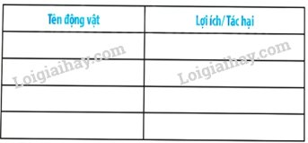 Có thể lập bảng theo mẫu, thay động vật trong bảng bằng những động vật em quan sát được.