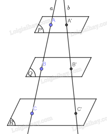 Cho \(a\), \(b\) là hai đường thẳng phân biệt cắt ba mặt phẳng song song \(\left( P \right)\), \(\left( Q \right)\), \(\left( R \right)\) lần lượt tại \(A,{\rm{ }}B,{\rm{ }}C\) và \(A’,{\rm{ }}B’,{\rm{ }}C’\). Khẳng định nào sau đây là SAI?