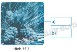 Câu 35.3 Cho một số thông tin sau về nón thông: “Nón thông gồm nón đực và nón cái nằm trên cùng một cây. Nón đực nhỏ, mọc thành cụm; nón cái lớn, mọc riêng rẽ”. Dựa vào thông tin trên và xác định nón đực và nón cái của thông trong hình 35.2.