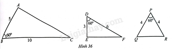 Xét hai tam giác \(ABC\) và \(EDF\) có \(\frac{{AB}}{{BC}} = \frac{{ED}}{{DF}}\) và \(\widehat {ABC} = \widehat {EDF} = 60^\circ \).