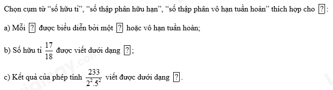 b) Số hữu tỉ \(\dfrac{{17}}{{18}}\) được viết dưới dạng số thập phân vô hạn tuần hoàn