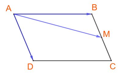 Cho hình bình hành ABCD. Gọi M là trung điểm của cạnh BC. Hãy biểu thị AM theo hai vecto AB và AD.