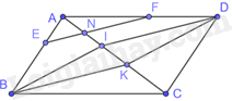Cho hình bình hành ABCD, điểm E thuộc cạnh AB (E khác A và B), điểm F thuộc cạnh AD (F khác A và D). Đường thẳng qua D song song với EF cắt AC tại I. Đường thẳng qua B song song với EF cắt AC tại K.
