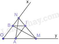 Cho góc nhọn xOy. Trên cạnh Ox lấy điểm N, trên cạnh Oy lấy điểm M. Gọi I là một điểm trên đoạn thẳng MN.