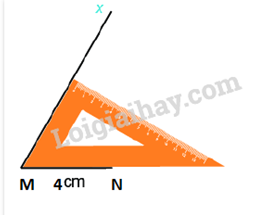 Bước 2: Dùng ê ke có góc \({60^0}\), vẽ góc \(NMx\) bằng \({60^0}\).