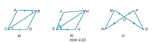 Trong mỗi hình dưới đây, hãy chỉ ra một cặp tam giác bằng nhau và giải thích vì sao chúng bằng nhau.
