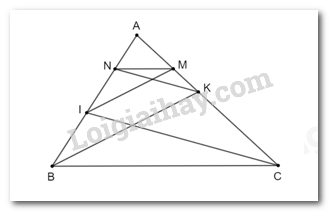 Áp dụng định lí Thalès đảo với IM //BK, KN // CI, ta có các tỉ lệ thức, từ đó ta có tỉ lệ thức để suy ra MN // BC