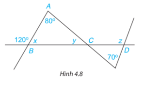 Mà \(\widehat D + z = {180^o}\)( 2 góc kề bù)
