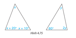 Tính các số đo x, y trong tam giác dưới đây (H.4.75)
