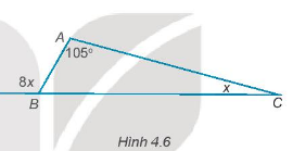 \(\begin{array}{l} \Rightarrow {105^0} + \left( {{{180}^0} – 8x} \right) + x = {180^0}\\ \Rightarrow  – 7x = {180^0} – {105^0} – {180^0}\\ \Rightarrow  – 7x =  – {105^0}\\ \Rightarrow x = {15^0}\end{array}\)