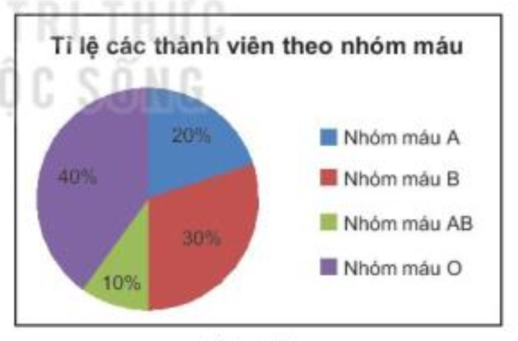 Bài 4 (5.8). Biểu đồ cho biết tỉ lệ thành viên theo nhóm máu của một đội hiến máu gồm 200 tình nguyện viên. Hỏi: