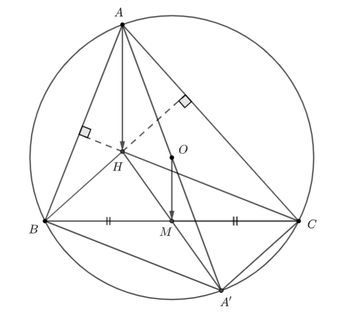 Cho tam giác \(ABC\) không vuông, với trực tâm \(H\), nội tiếp đường tròn \((O).\) Kẻ đường kính \(AA’\) của đường tròn \((O).\)