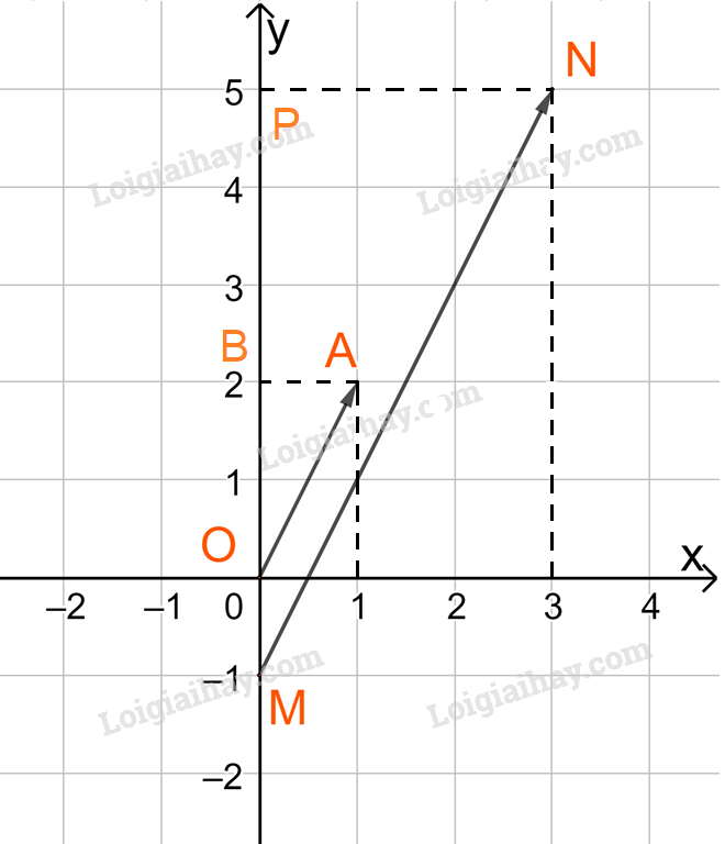 Trên mặt phẳng tọa độ Oxy hãy vẽ các vecto OA, MN với A (1; 2), M (0; -1), N (3; 5).