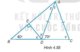 Tính số đo các góc x, y, z, t, v trong hình 4.55