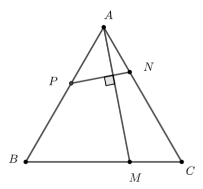 Cho tam giác \(ABC\) đều các cạnh có độ dài bằng 1. Lấy \(M,\,\,N,\,\,P\) tương ứng thuộc các cạnh \(BC,\,\,CA,\,\,AB\) sao cho \(BM = 2MC,\,\,CN = 2NA\) và \(AM \bot NP.\) Tỉ số của \(\frac{{AP}}{{AB}}\) bằng