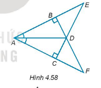 Cho các điểm A, B, C, D, E, F như Hình 4.58. a)Tìm ba cặp tam giác vuông bằng nhau và giải thích vì sao chúng bằng nhau.