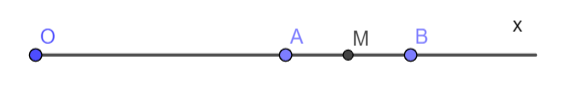 Bài 4 (8.22). Cho hai điểm phân biệt A và B cùng nằm trên tia Ox sao cho OA = 4 cm, OB = 6 cm. Gọi M là trung điểm của đoạn thẳng AB. Tính độ dài đoạn thẳng OM.
