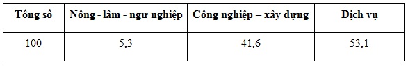 Giải bài 4 trang 102 vở bài tập Địa lí 9, Vẽ biểu đồ thể hiện cơ cấu kinh tế của TP. Hà Nội