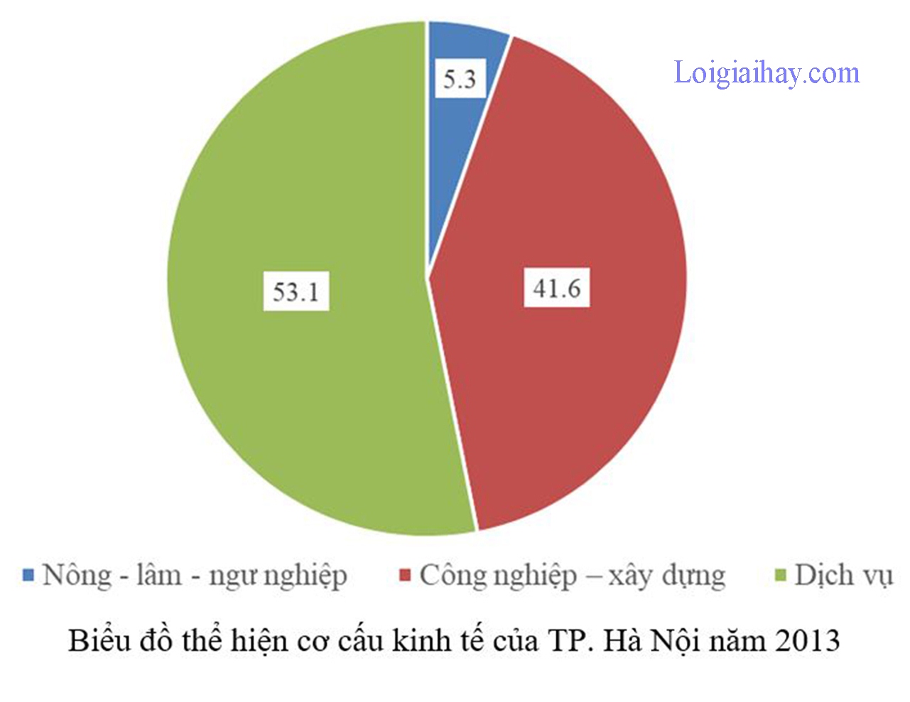 Vẽ biểu đồ thể hiện cơ cấu kinh tế của TP. Hà Nội