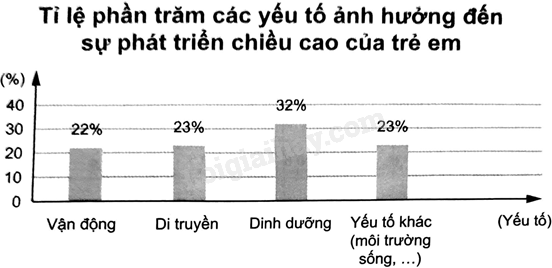 Bảng thống kê sau cho biết tỉ lệ phần trăm các yếu tố ảnh hưởng đến sự phát triển chiều cao của trẻ em.